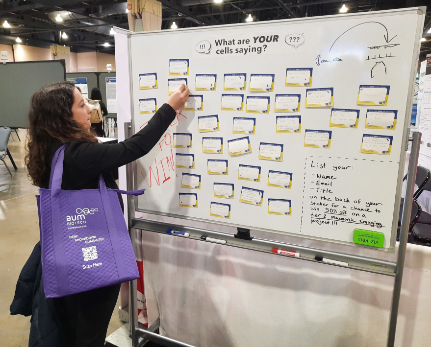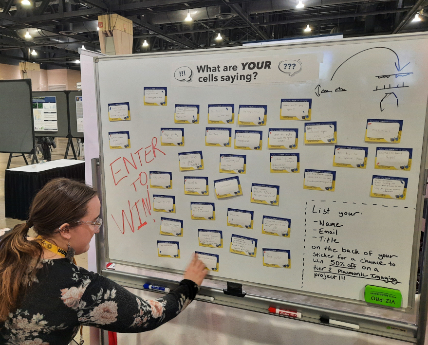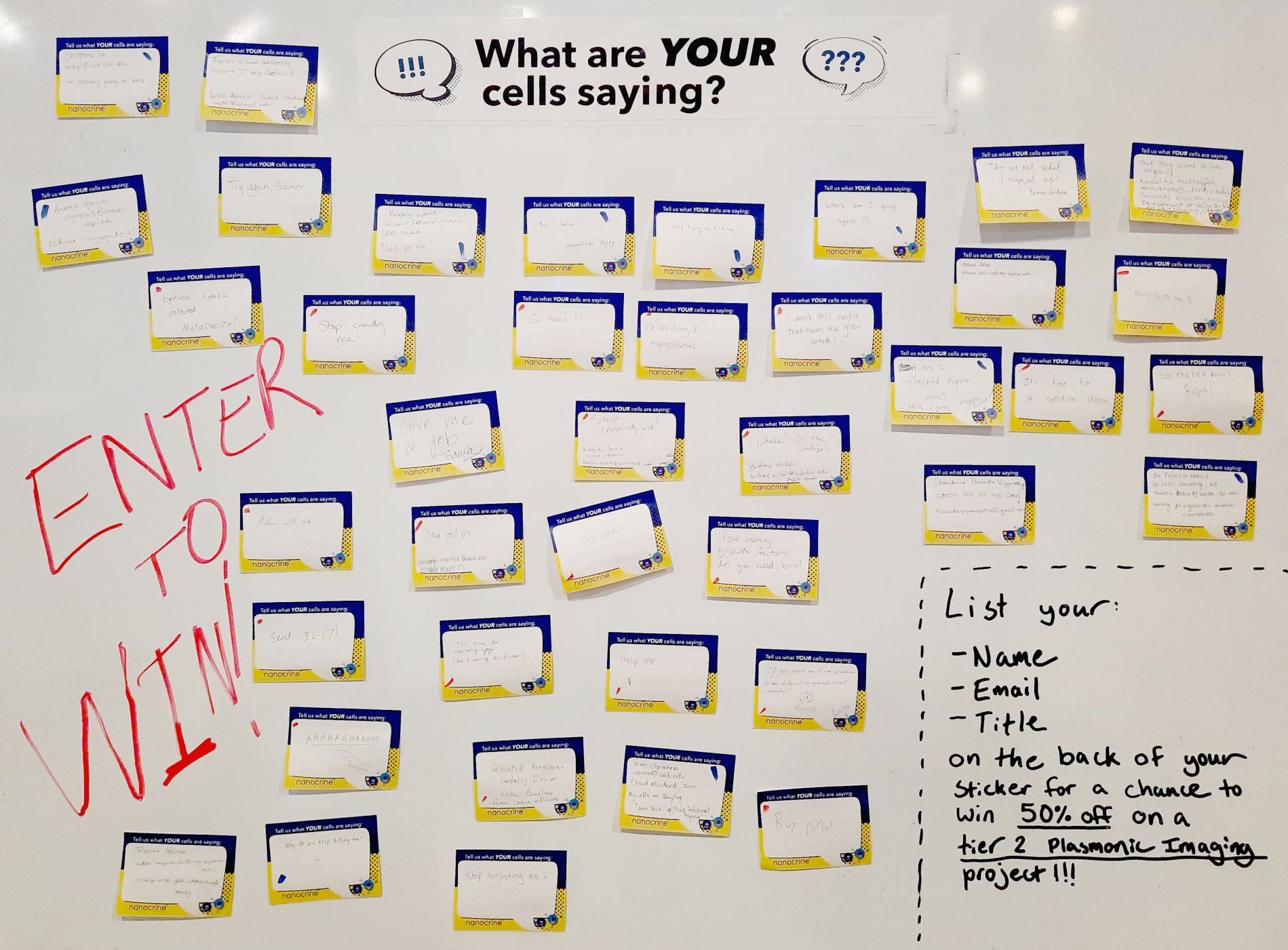 We had several people participate in our "What are YOUR cells saying?" activity, where everyone had the opportunity to imagine what their cells might be saying if we could only ask them… which we now can thanks to plasmonic imaging!
